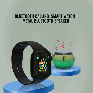 Experience ultimate convenience with a smart watch featuring a 3.55 cm colored display, Bluetooth calling, and touch screen functionality. Paired with a portable metal Bluetooth speaker for rich sound and heavy bass, this combo may offer unmatched style and entertainment.