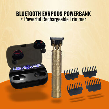 STAY CHARGED, STAY CONNECTED, STAY GROOMED - Bluetooth Earpods Powerbank + Powerful Rechargeable Trimmer (TWS51)