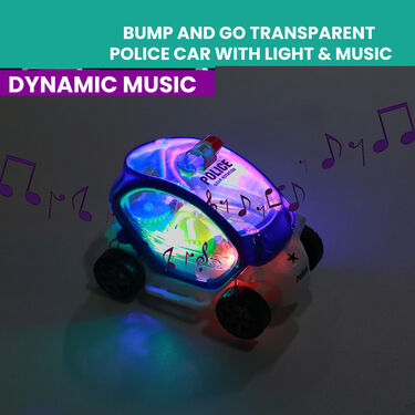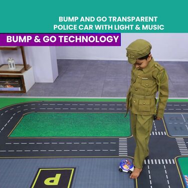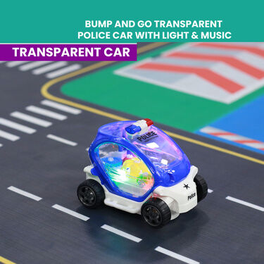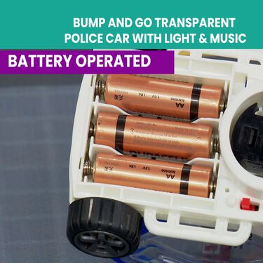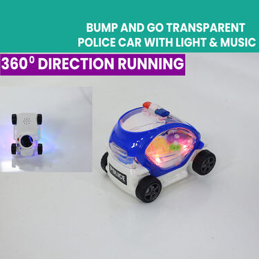 Bump and go police Car can travel 360 degrees and automatically change direction when meeting any obstacle. This makes the stunt car remain in constant motion without the need for a remote control. It comes with great music and lights. This makes a great gift for any kid.
