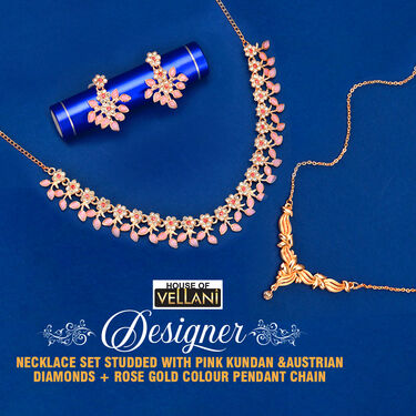 Studed with pink kundan and austrian diamonds this necklace set is very precious and beautiful to look at. Hence naaptol brings to you this Designer Necklace Set with Pendant Chain. This set comes with matching studded earrings too. It also has a golden coloured finishing that makes it look rich and premium. This set is also ideal for gifting purposes.