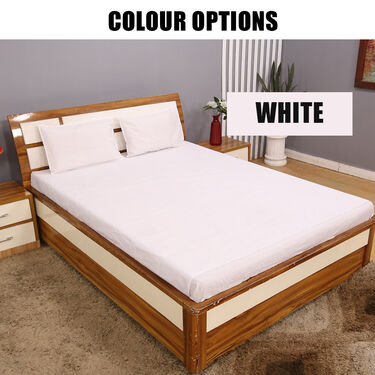 Naaptol gets you this Double bed fitted mattress protector. It is super effective as nothing gets through as it has a waterproof PU coating. It has a cotton feel and it is made of a knitted terry fabric which is a stretchable fabric that gives a snug fit. It also has an elasticated border for a perfect fit. It comes in plain white color along with 2 pillow protectors as well.