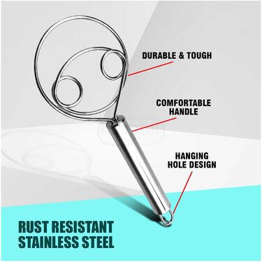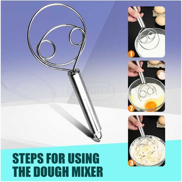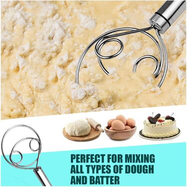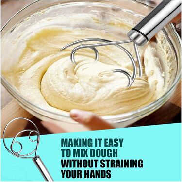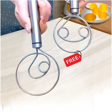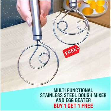 Introducing our Dough Mixer & Egg Beater, the ultimate baking companion for achieving perfectly mixed dough and batter. Its ergonomic design ensures comfortable handling, allowing for effortless mixing without straining your hands. Crafted from high-quality stainless steel, this versatile tool is suitable for mixing all types of dough and batter, from bread to cookies. With its nonstick feature, cleaning is a breeze â?? simply wash with soap and water or pop it in the dishwasher. Say goodbye to clumpy dough and hello to smooth, mess-free baking experiences with our Dough Mixer & Egg Beater