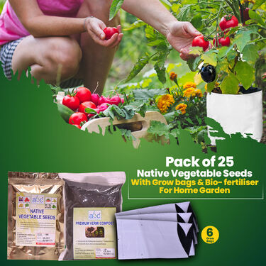 Pack Of 25 Native Vegetable Seeds With Growbags & Biofertiliser For Home Garden (VEGSC)